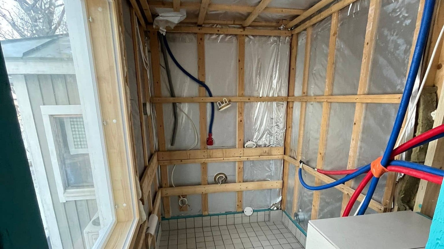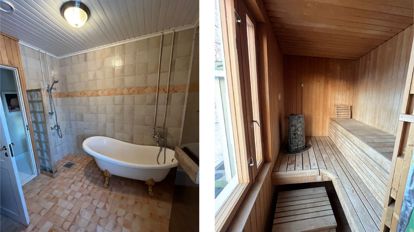 Saunan ja pesuhuoneen uudistus. Remontissa tehtiin mm. seinämuutoksia - saunan ja pesuhuoneen välisen seinän paikkaa muutettiin ja kaivo muutettiin unidrain kaivoksi. Saunan seinät ja pesuhuoneen katto viimeisteltiin komealla lämpökäsitellyllää haavalla ja saunaan lauteet tehtiin höylätystä, lämpökäsitellystä radiaatasta.