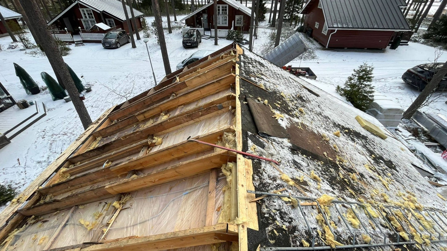 Mökin käyttövesiputki halkesi putkien jäätdyttyä ja vettä vuosi mökin rakenteisiin asti. Mökistä purettiin keittön ja olohuoneen ponttilautalattiat, koolauspuut ja eristeet. Kodinhoitohuoneen WC:n sekä saunan/pesutilan lattiat timanttisahattiin/piikattiin. Ulkoseinät avattiin ja eristeet purettiin. Purkutyön jälkeen asennettiin kuivaus.